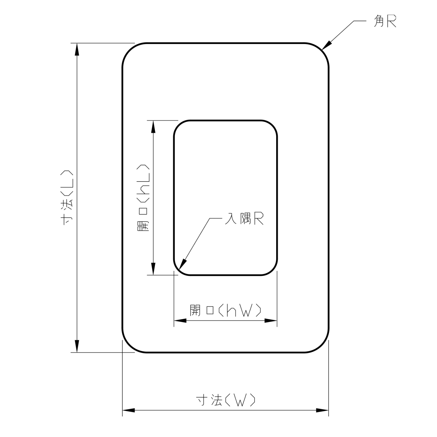| 入隅R | ご指定寸法。開口4隅共通。 |