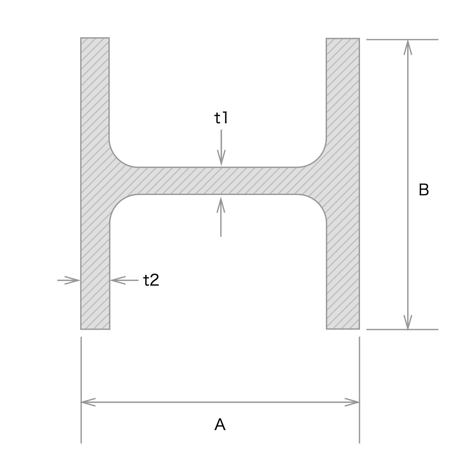 H形鋼は断面が「H」の形状をしている鋼材です。上フランジ、底フランジ、およびウェブから構成されていて、垂直方向の荷重に対して強い構造を形成します。